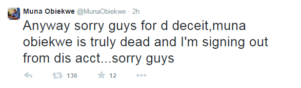 The user finally surrendered in the early hours of today, Monday, January 19, 2015 confirming its fake status.