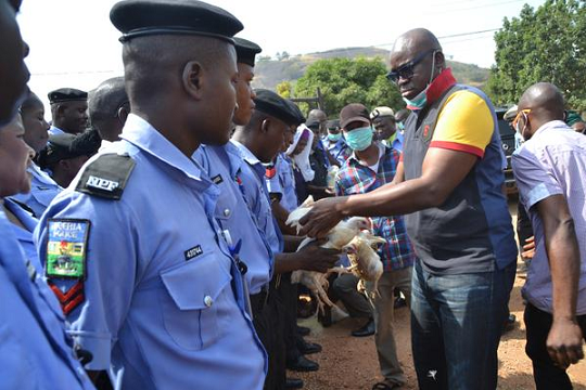 Paying deaf ears to the rebuke, the governor visited the state police on Tuesday, December 23, and yet again, distributed chickens to the officers on duty.