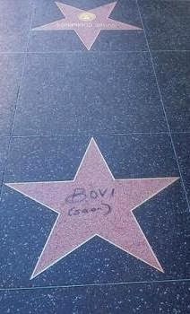 Popular comedian Bovi shared a photo of him scribbling down his name on one of the stars on the Hollywood walk of fame located in Hollywood, California.