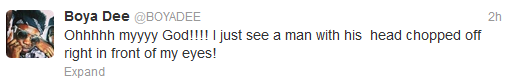 According to an unconfirmed report, “Two black men in a blue Vauxhall car rammed into the soldier on John Wilson Street, then jumped out of their car and started attacking him with meat cleavers.
