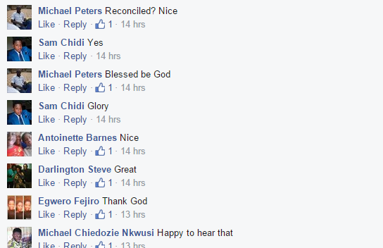 It all started hours ago when a Christ Embassy member, Sam Chidi posted a photo of the couple on his Facebook page with the caption: “Thank you Jesus. Glory!