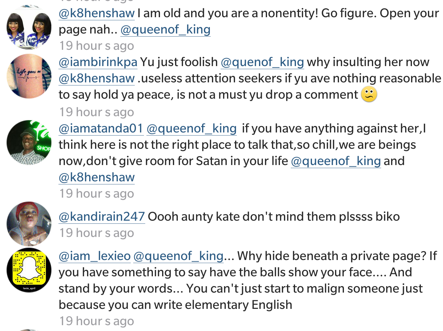 The actress and the fan then went into a war of words, with most of Kate’s Instagram followers, choosing to side with her.