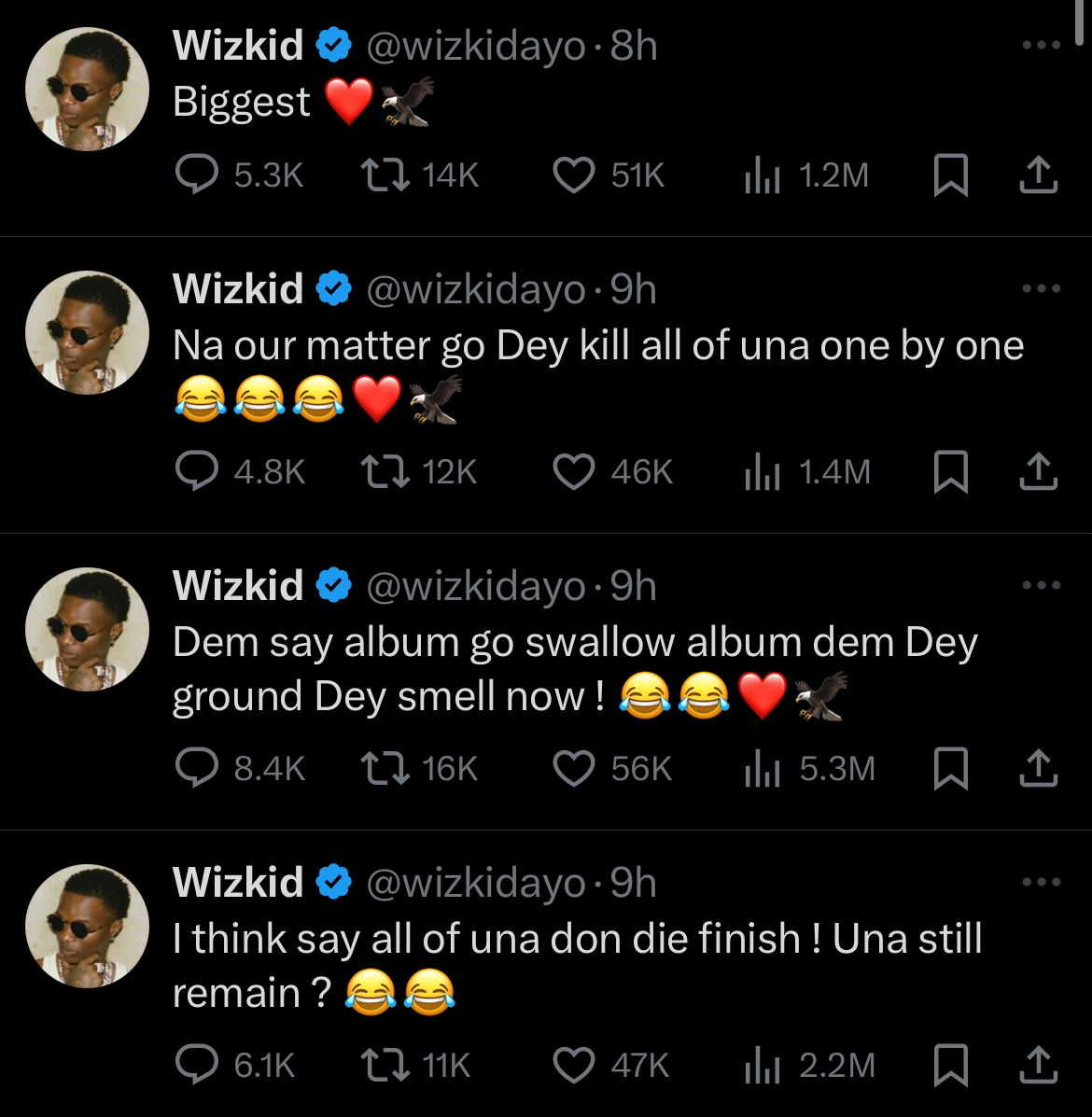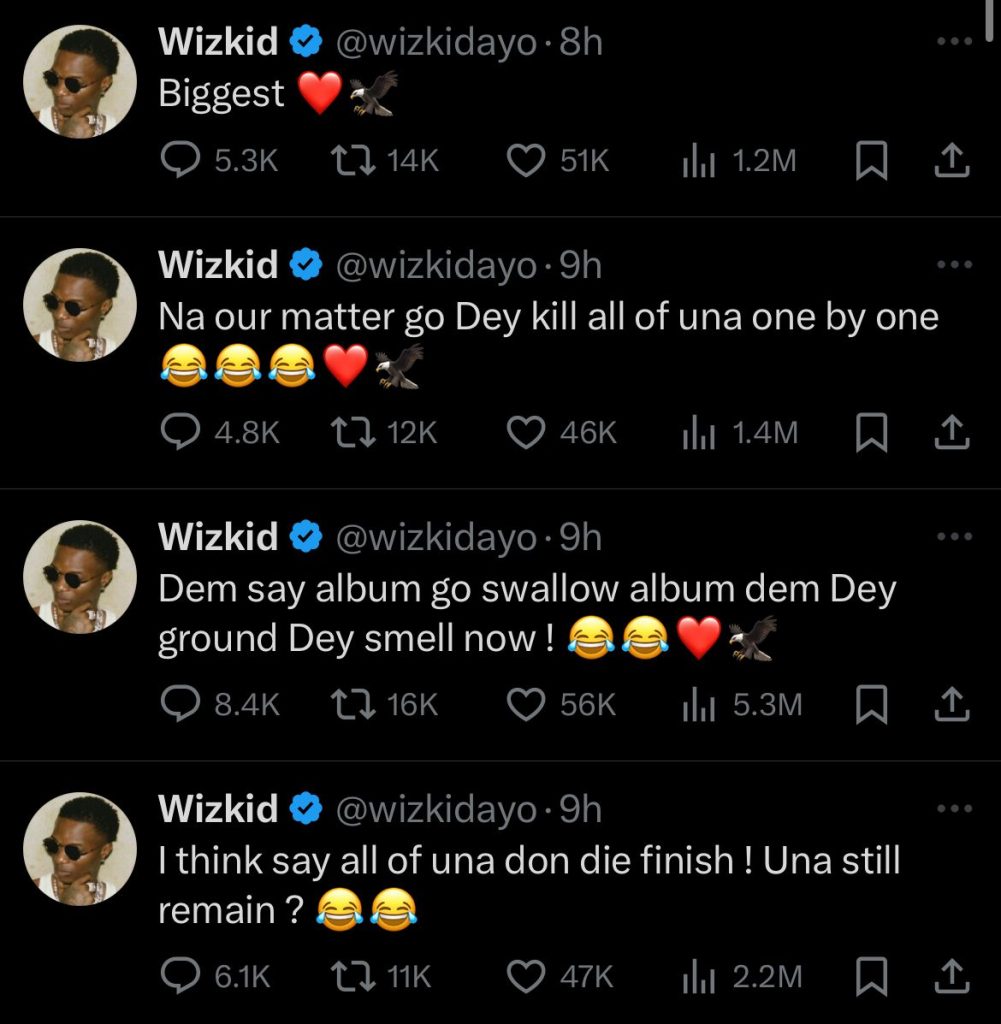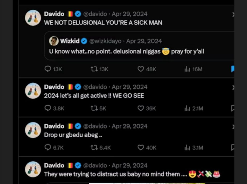 By early 2024, tension resurfaced. A tweet from Davido, posted shortly after the success of his collaboration with Kizz Daniel, was interpreted as shade toward Wizkid’s evolving R&B style. Another cryptic tweet followed in April, prompting Wizkid to respond using a viral video of Davido. What started as vague online banter escalated into weeks of fan-driven conflict, with affiliates from both camps joining the conversation.