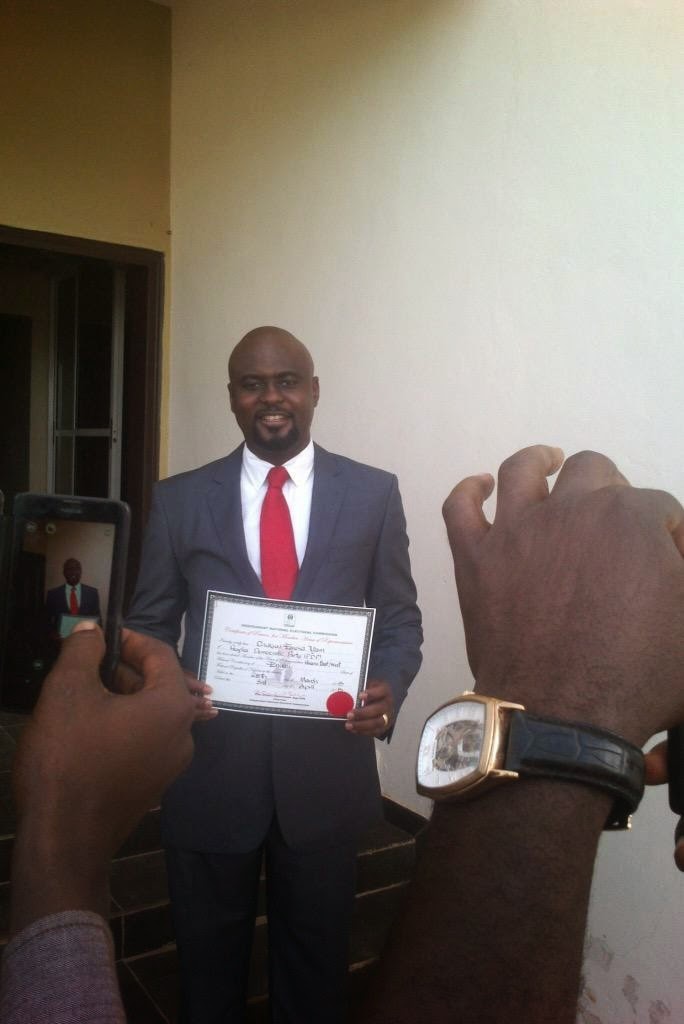 Federal House of Reps aspirant, Dr. Chukwuemeka Ujam who was paraded after being allegedly caught with 4,000 PVCs at Ozalla, Nkanu East LGA Enugu State, has been awarded his certificate of return by INEC.