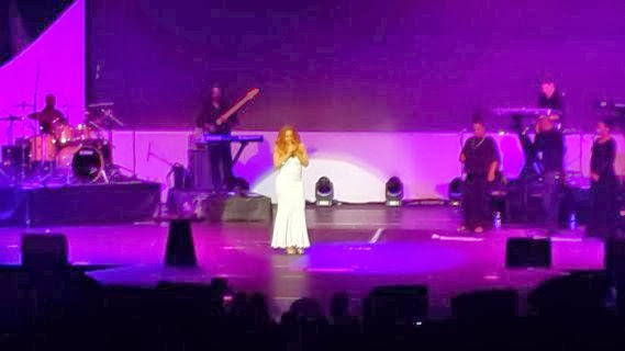 The singer and mother of two wore a sexy yellow outfit and later changed to a stunning white dress performing hits like Hero.