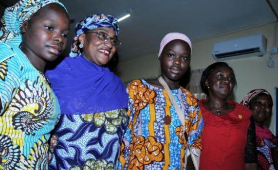 The freed Chibok school girls have been handed to the Minister of Women Affairs and Social Development, Aisha Al-Hassan, by the DSS, in Abuja on Tuesday.