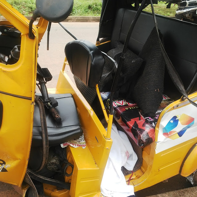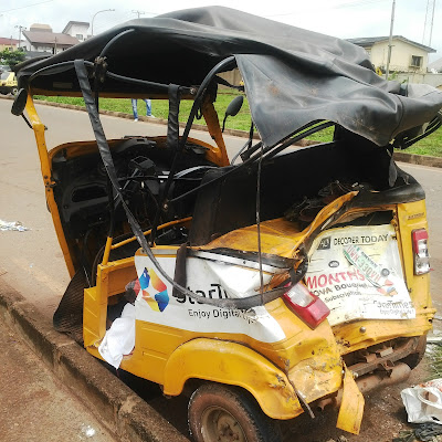 An eye witness said the Toyota car driver broke his neck while the tricycle driver and his passengers, a couple were also injured.