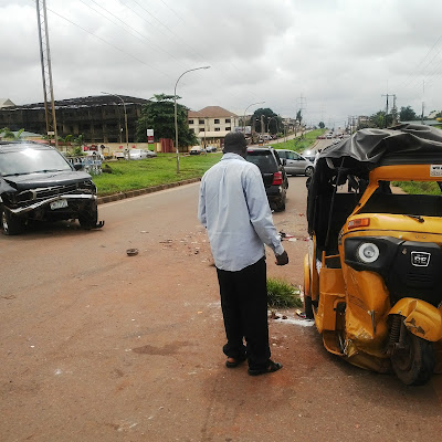 According to reports, the driver who was behind the wheels of a pathfinder jeep had a seizure and lost control of the vehicle, ramming into a Toyota car, a tricycle and some other road users.