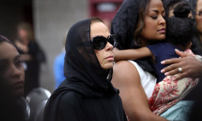 Muhammad Ali’s fourth wife Lonnie Ali , stands with Ali’s daughter Laila and a grandchild during the service.