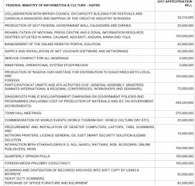 Lai Mohammed, the chief priest of “ChangeBeginswithMe,” will spend N409 million for “grassroots enlightenment” next year, N270 million for “town hall meetings,” N100 million for “interaction with bloggers,” etc., N100 million for “foreign media PR/lobby consultancy” (another word for bribes), and so on. Clearly, “change” hasn’t begun yet with the patron saint of “change begins with me.” Maybe that’s why we haven’t heard of the campaign lately.