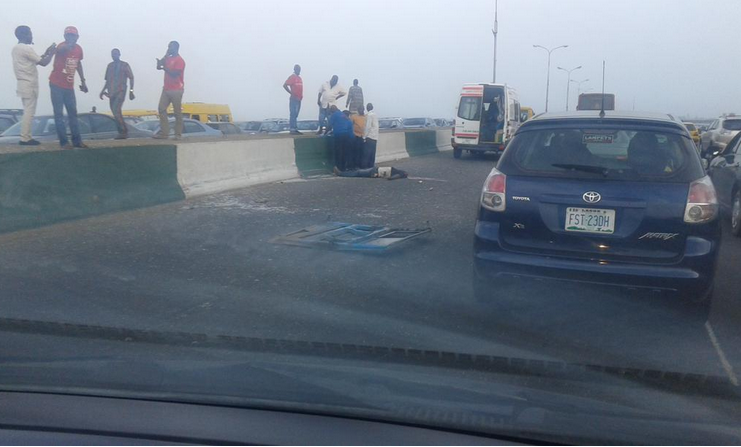 by Anike Jacobs A fatal accident occurred on the Third mainland bridge, in Lagos, a few hours ago. Details are still sketchy but Twitter users who witnessed the tragic incident and shared photos, say the accident led to the death of a bike rider and its passenger.