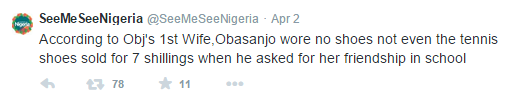 According to @SeeMeSeeNigeria – a Twitter handle that dishes out Nigerian facts and facts about Nigerian leaders and Nigerians breaking boundaries from time to time – the former Nigerian president had no shoes as at the time he met his first wife.