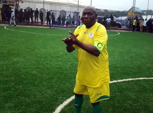 Former President Olusegun Obasanjo yesterday played a football match against the Ogun State Executive Team led by the governor, Ibikunle Amosun, to usher in 78th birthday celebration today.