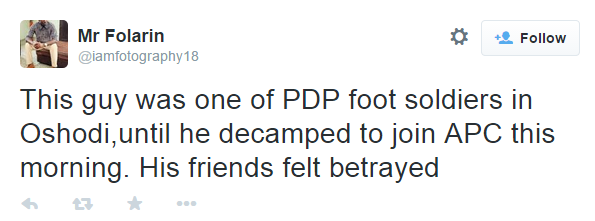 It’s hard to believe anyone would be so treated for making a political decision which is well within his rights but according to a Twitter user, @iamfotography18, trouble started when the influential street urchin decided to dump a party for the All Progressives Congress (APC).