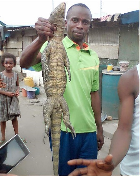 After killing the big monitor lizard with his bare hands, he decided to show off his achievement by posing with the dead reptile.
