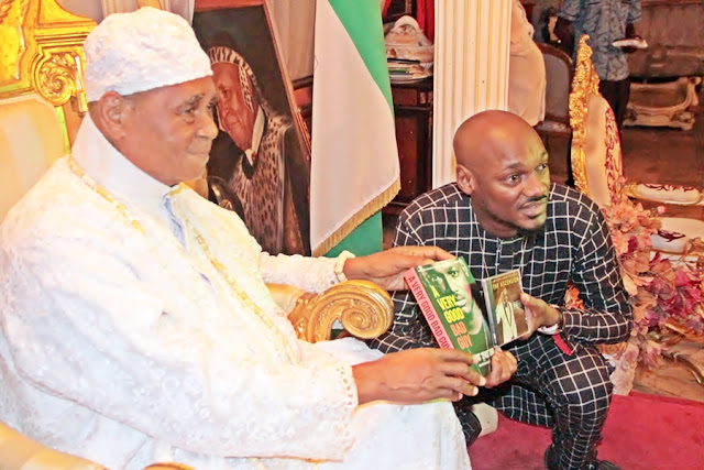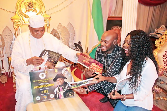 2face Idibia supported by his wife, Annie Idibia on Monday, May 9 paid a courtesy visit to the Esama of Benin – Sir Gabriel Igbinedion.