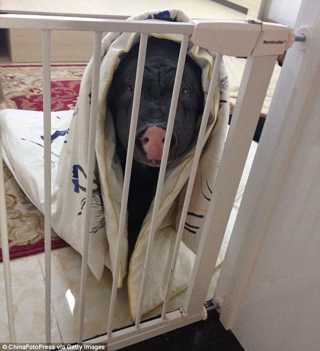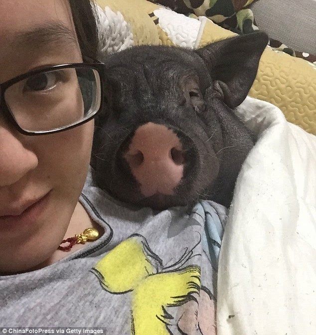 The owner’s surname, Zhu, sounds exactly like ‘pig’ in Mandarin and that may be the reason for her love of this rather unusual pet.