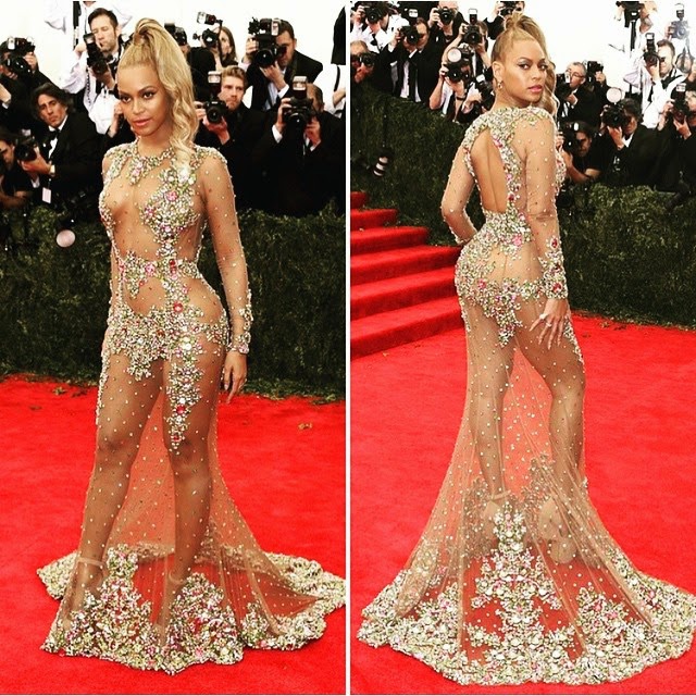 by Anike Jacobs Beyonce shut down the 2015 MET Gala in her sheer body hugging sheer Givenchy dress. Considered one of her sexiest looks yet, she was also tipped as one the best dressed of the night! Jay Z was the perfect husband,watching her and making sure, there was no fashion fail. Power couple!