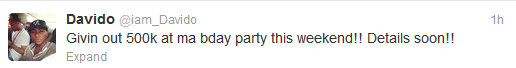 The Omo Baba Olowo (O.B.O) announced on twitter today that he would be handing out N500,000 at his birthday over the weekend.
