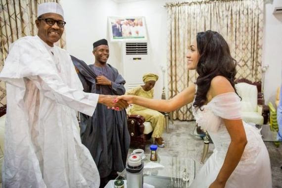 A-List Politicians: Senator Bukola Saraki; president-elect, Muhammadu Buhari; Governor Adams Oshiomhole; his wife, Iara Oshiomhole, Mrs and Mrs Fortes, parents of the bride and vice president-elect, Prof Yemi Osibanjo