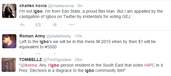 But rather unfortunately, Twitter users of the Igbo ethnic stock have been forced to defend themselves after being subjected to online bullying and abuse for ‘voting for President Goodluck Jonathan’.