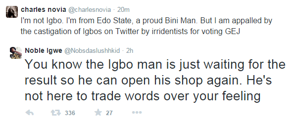 But rather unfortunately, Twitter users of the Igbo ethnic stock have been forced to defend themselves after being subjected to online bullying and abuse for ‘voting for President Goodluck Jonathan’.