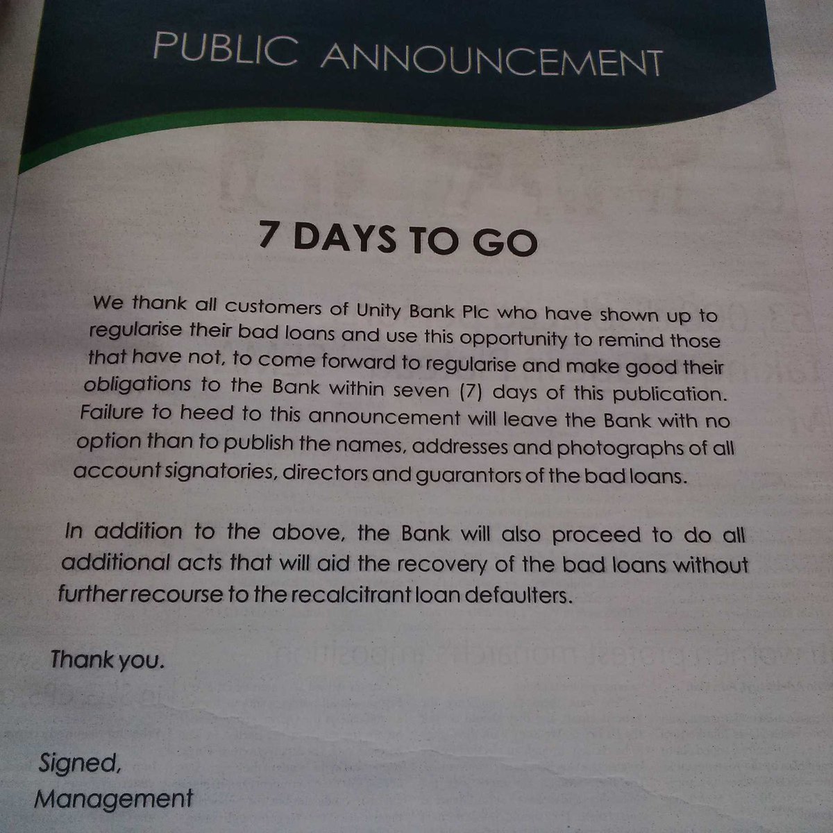They’ve had it up to “here” with your bad debt. Onigbeses, you’re running out of time.