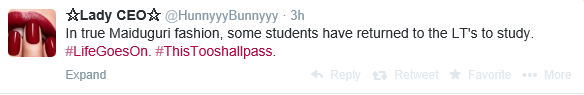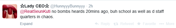 Apparently a student of the institution tweeted about the incident and later reported that the explosion has stopped, other sources corroborated the report.
