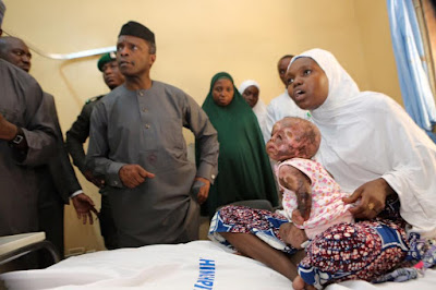 Vice president Yemi Osibanjo met with the baby and her mum at the Maiduguri teaching hospital today.
