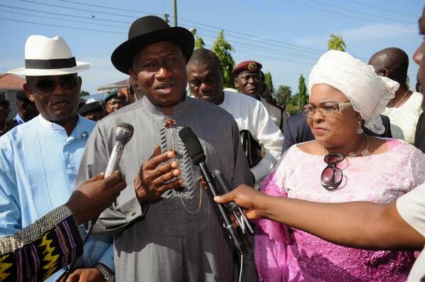 President Goodluck Jonathan and his wife, Mama Peace visited their home town Otueke, Bayelsa state to pick up their Permanent Voters’ cards today.