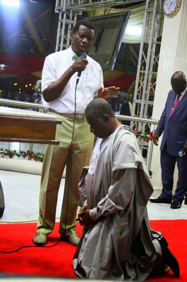 After his speech, Pastor Adeboye led the congregation to pray for the President and the country.
