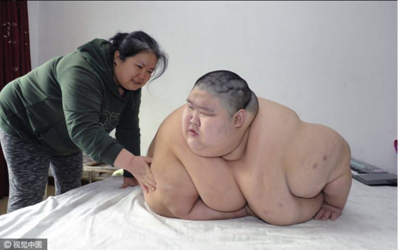 While the elder son Zhang Hangjun weighed 550 pounds with a 300cm waist, his younger brother Zhang Yuanjun weighed 275 pounds. Both aged 22, added to their suffering of cerebral palsy and autism, also have severe learning disability.