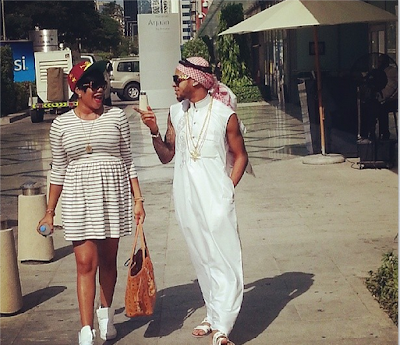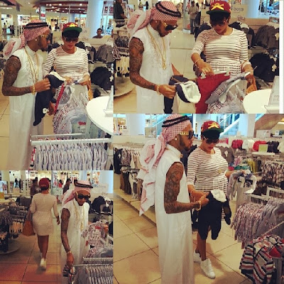 The duo, who are on vacation, are in Dubai after a brief stint in Los Angeles and Toyin shared this photo of them shopping for baby clothes.