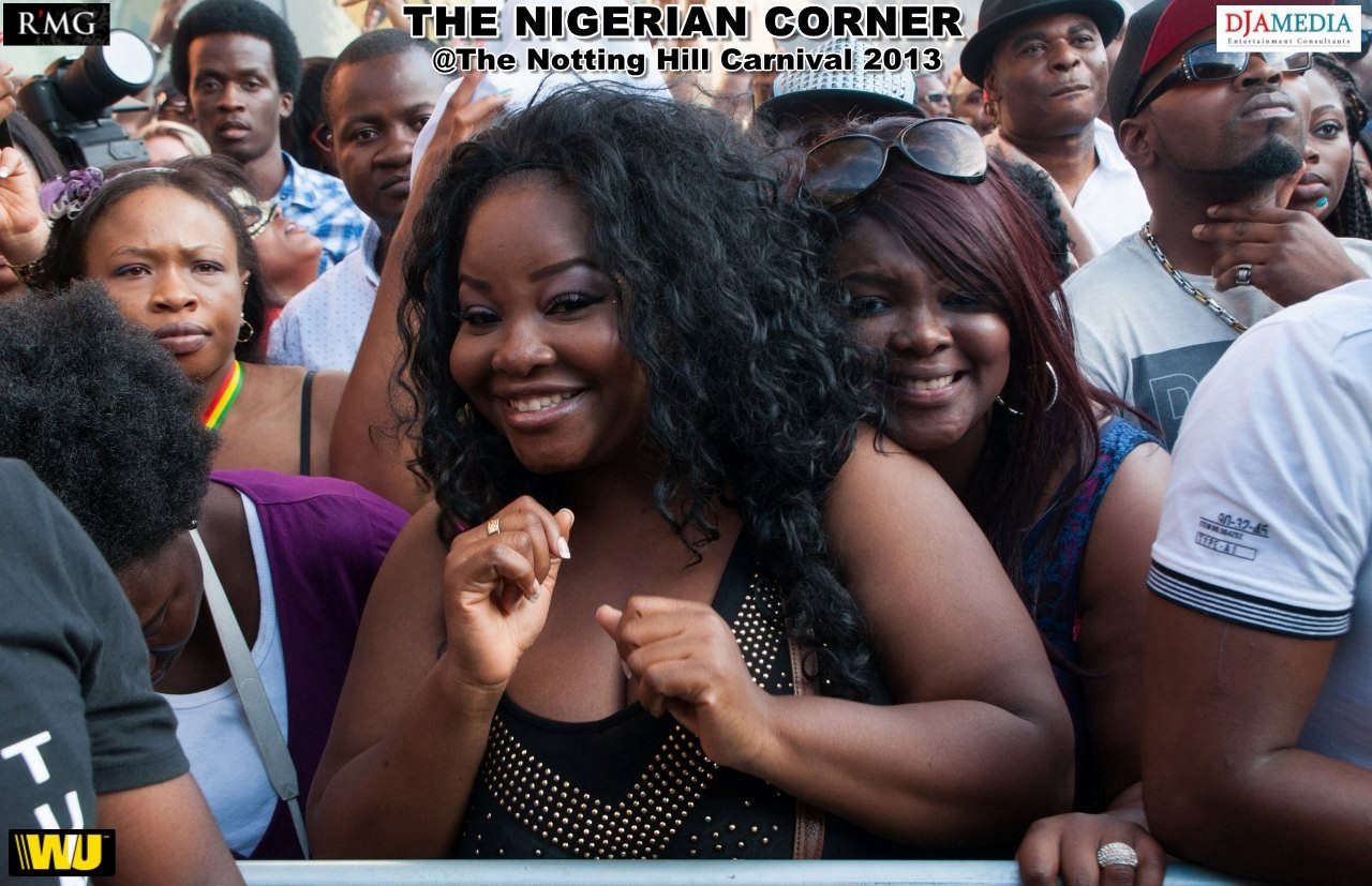 The 2013 edition of the Nigerian Corner at the Notting Hill Carnival lived up to the tag that describes it as the largest gathering of Nigerians in the UK. Thousands thronged the Adela Street West London location to savour the very best of Nigerian food, drinks, dance, music and live performances by Nigerian acts. Acts that performed include Tillaman, Nikki Laoye, Breis, African Boy, Moelogo, Dizzy VC, Honey B and many more.