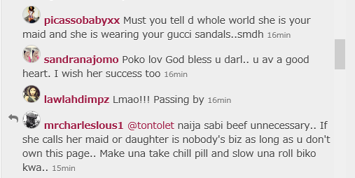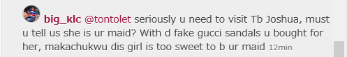 When actress and singer Tonto Dikeh posted the image above with the caption – “My Daughter/Maid Off for Examz today in my Gucci sandalz, Lol** #IHAVESAMEDREZZTOO #WIZHHERMORESUCCEZZ # SUCCEZZ TO EVRY1 WRITIN POZT-JAMB #BeautifulOnyinye” – she probably didn’t think she would receive a lot of backlash.