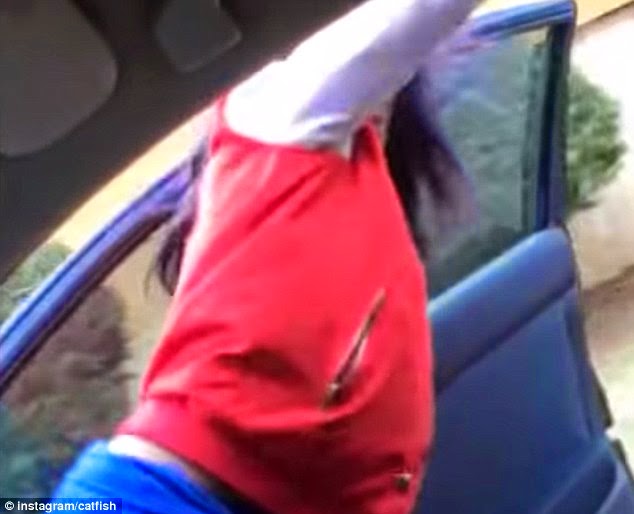 Adopting a squatting stance on the car’s passenger side, she jiggled her bottom and waved her arms around to the rap music. But seconds later, she seemingly overbalanced.