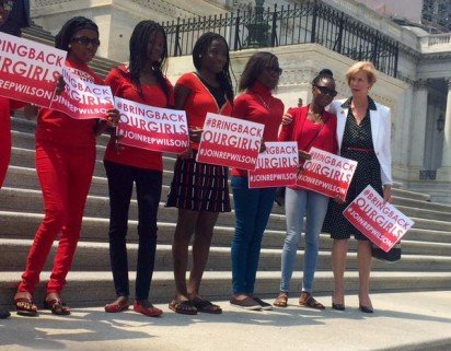 They also raised “Bring Back Our Girls” placards outside the Congress building to demand the girls’ rescue.