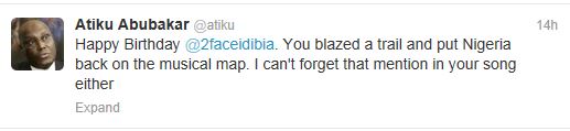 Former vice president, Atiku Abubakar sent a goodwill message to the superstar via Twitter.