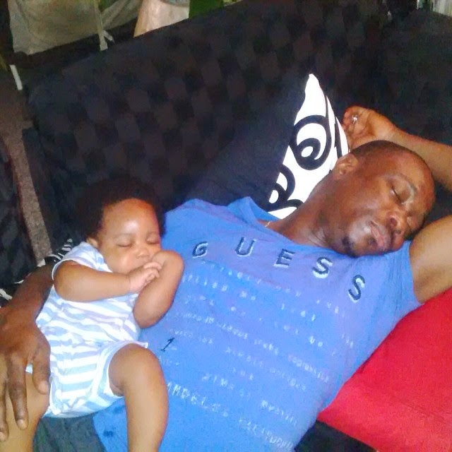 Julius Agwu’s wife shared a photo of her hubby sleeping with their baby boy, Zadok Chibuike Julius Agwu.